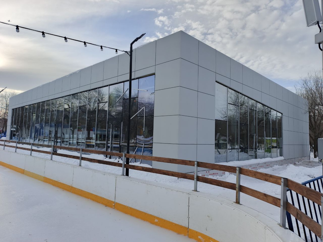 Проведены работы по устройству фриза из алюминиевых композитных панелей.